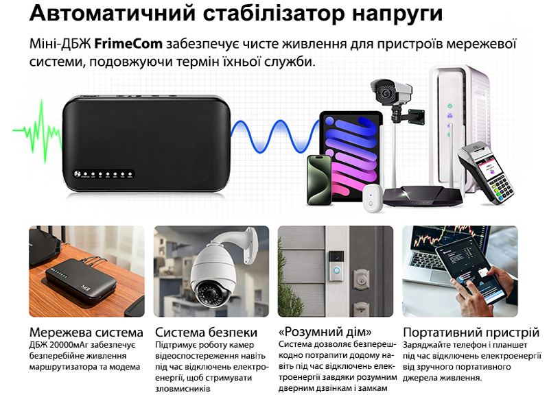 - Для живлення: роутерів, модемів, відеокамер, фотоапаратів, CCTV, телефонів, планшетів,